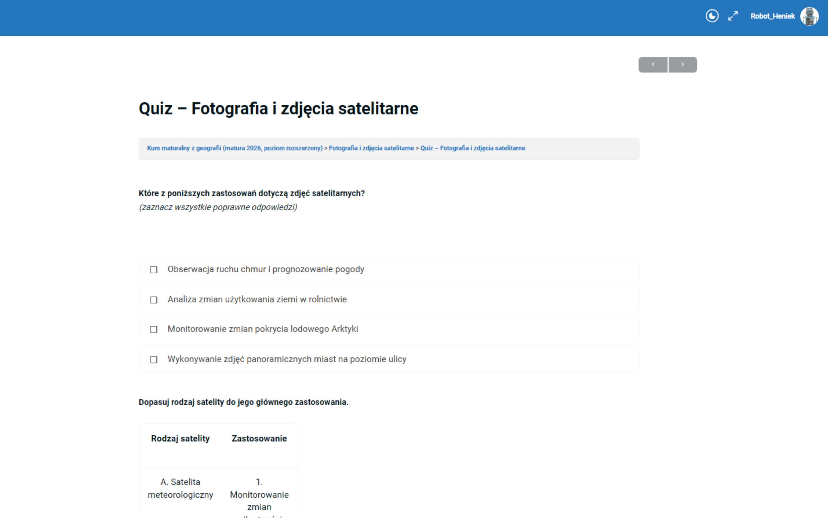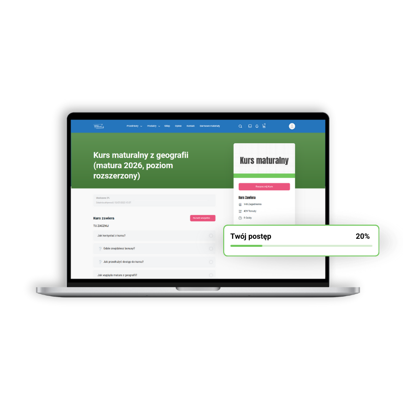 W kursie możesz odznaczać wykonane lekcje. Dzięki temu wiesz dokładnie, gdzie jesteś i co jeszcze przed Tobą. To nie tylko porządek, ale też realna motywacja do działania. Śledzenie postępów pomoże Ci utrzymać rytm nauki, lepiej planować powtórki i unikać chaosu. A to klucz do skutecznego przygotowania do egzaminu!
