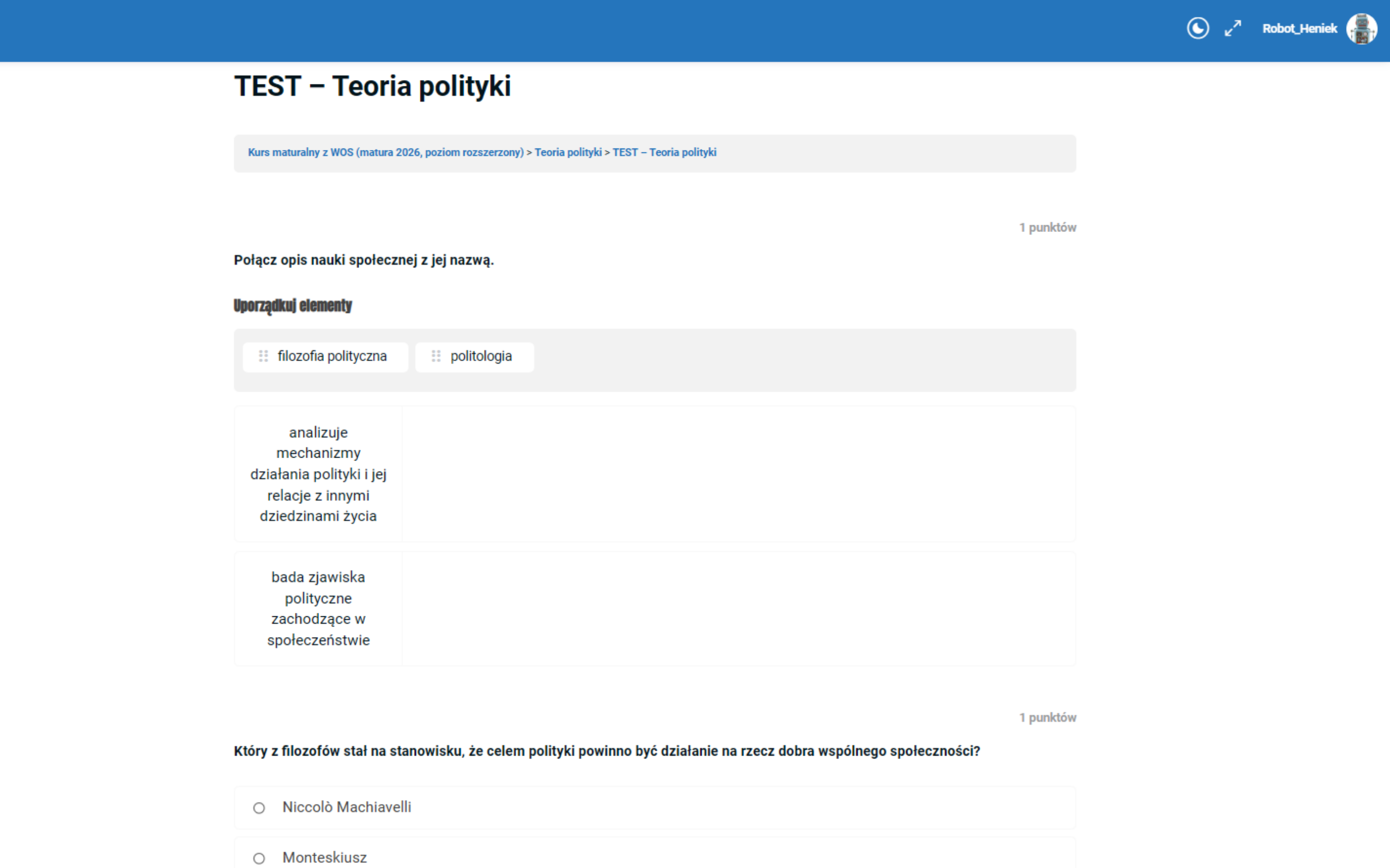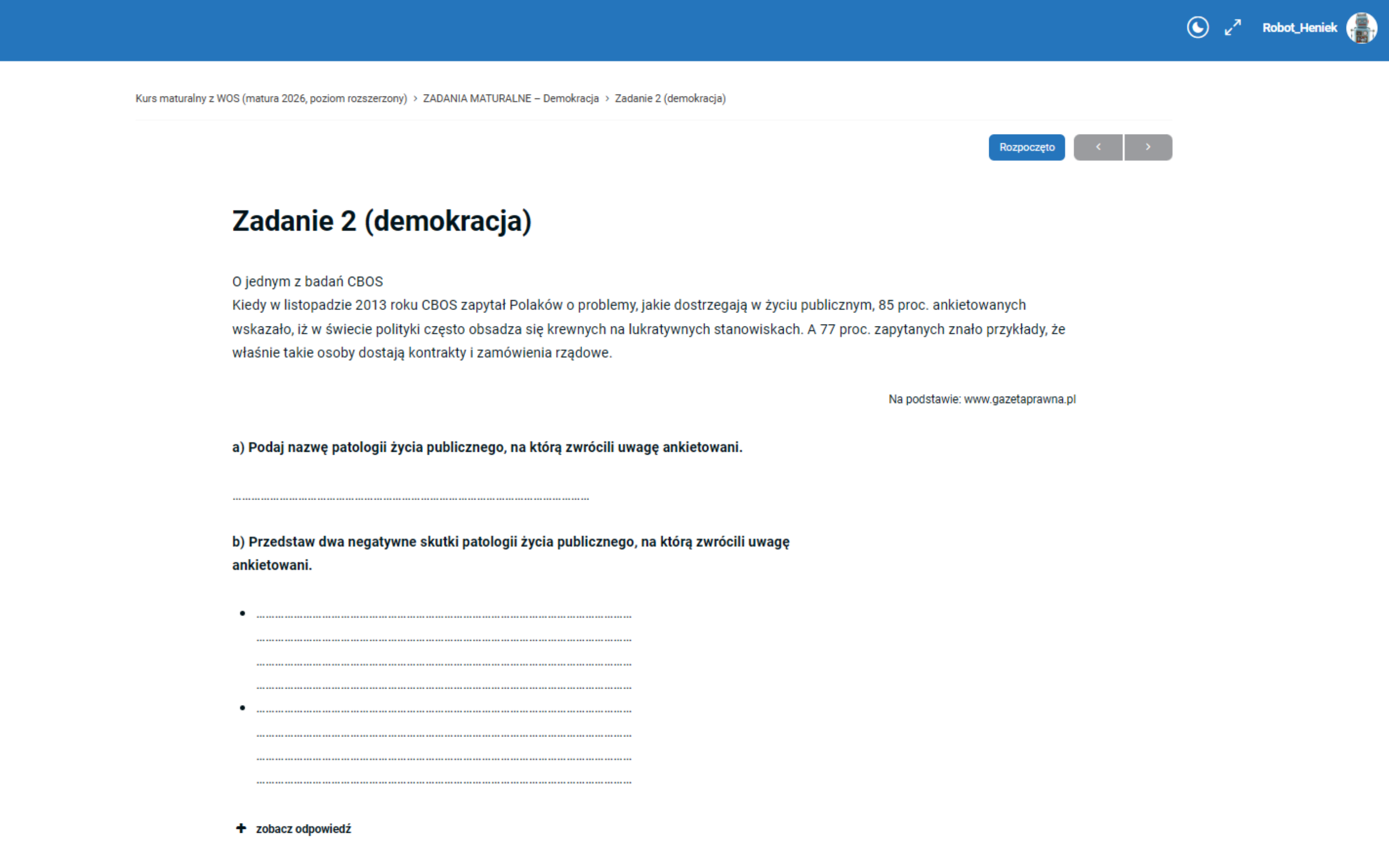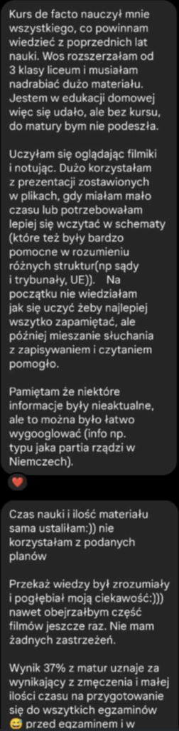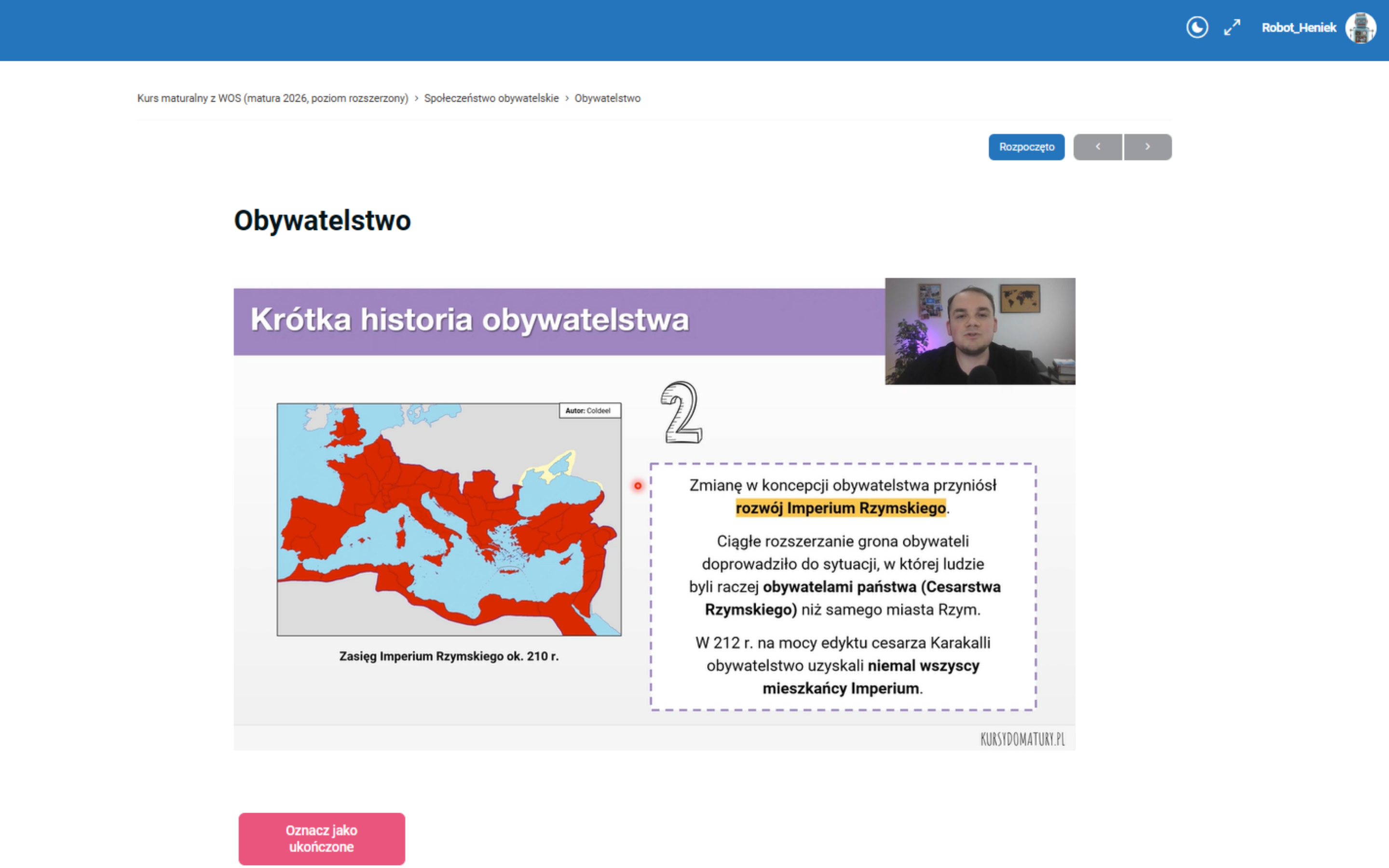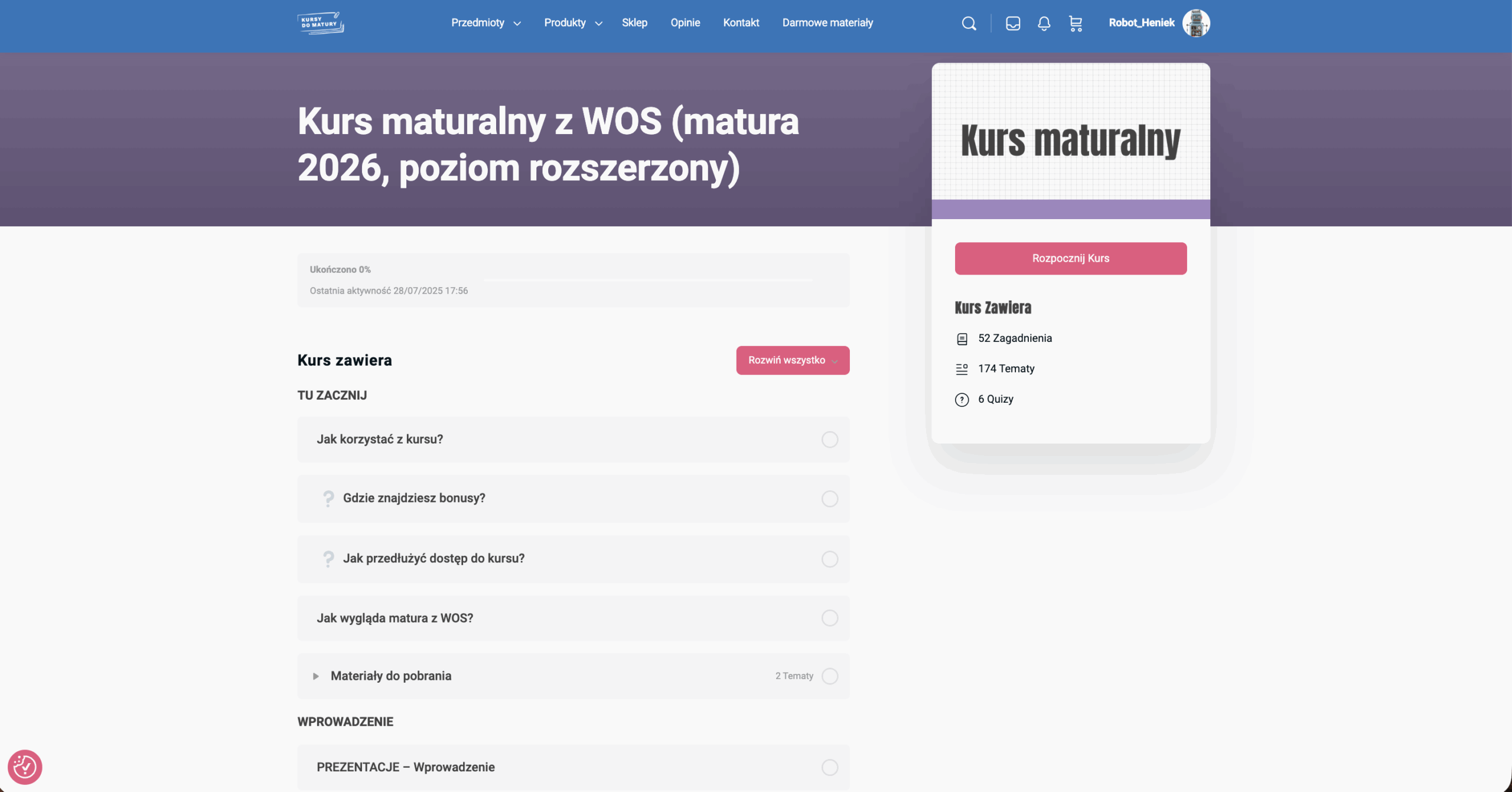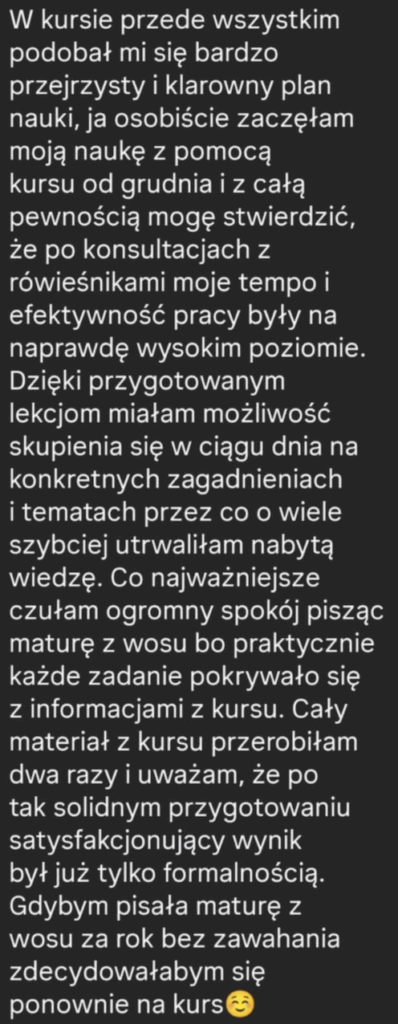 W kursie możesz odznaczać wykonane lekcje. Dzięki temu wiesz dokładnie, gdzie jesteś i co jeszcze przed Tobą. To nie tylko porządek, ale też realna motywacja do działania. Śledzenie postępów pomoże Ci utrzymać rytm nauki, lepiej planować powtórki i unikać chaosu. A to klucz do skutecznego przygotowania do egzaminu!
